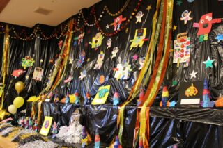 七夕祭りでは、笹の葉に飾られた短冊に可愛らしい願い事が書かれていました。