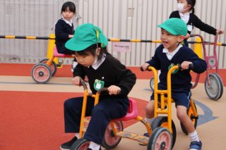 工事がまだまだ続いていますが、そんな中、三輪車のり場が完成しました!