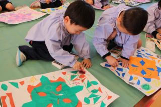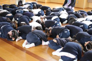 お正月に大きな地震があったこともあり、真剣な表情で身を守る練習をしていました。