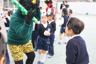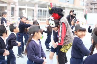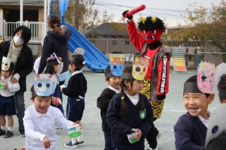 やさしい鬼さんが来てくれ、豆まきをしました。