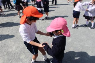 お兄ちゃん、お姉ちゃんたちが年少さんに優しく声をかけたり、お世話をしてくれていますよ。