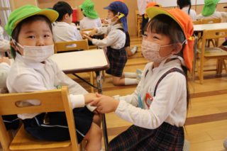 新しいクラス、新しい幼稚園での生活にドキドキしている子もいましたが、日に日にニコニコ笑顔が多くみられるようになってきています!